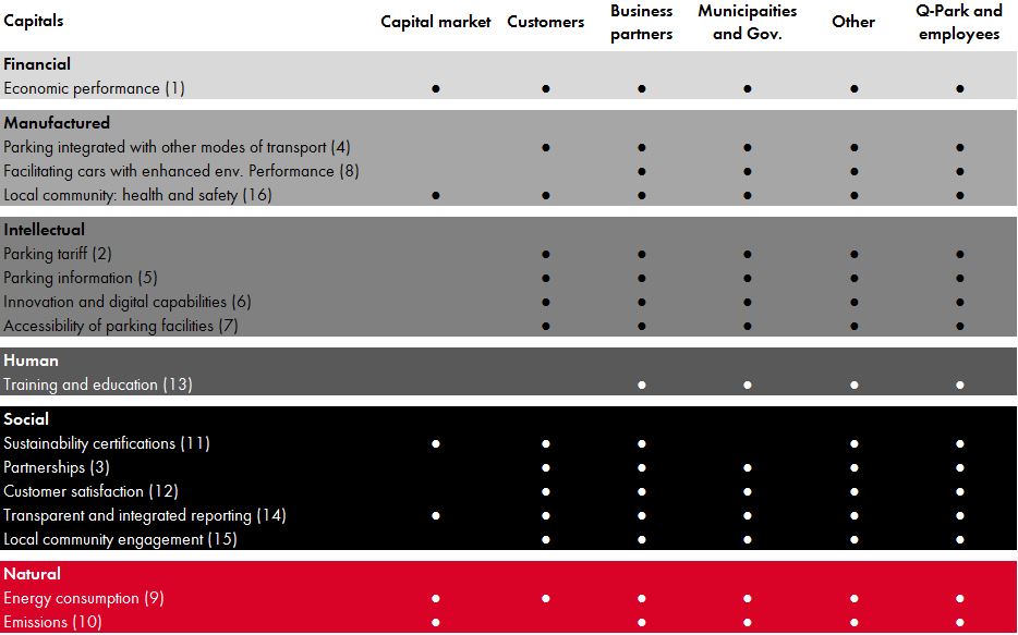 This year, we have classified these issues according to the IIRC's six capitals. See for further information see Six capitals.