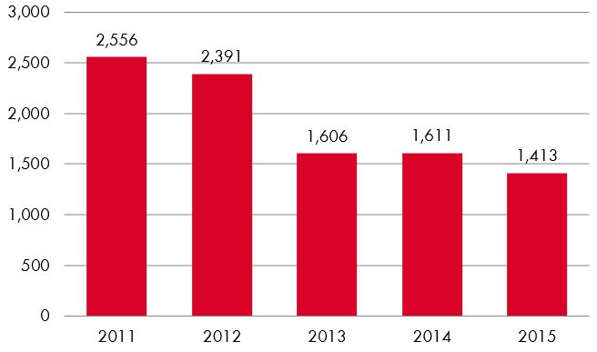 Our average CO2 footprint per parking space in owned or long-leased facilities decreased from 152 kg in 2014 to 150 kg in 2015.